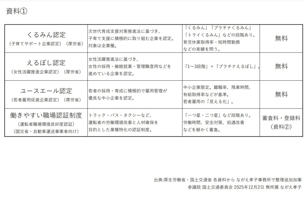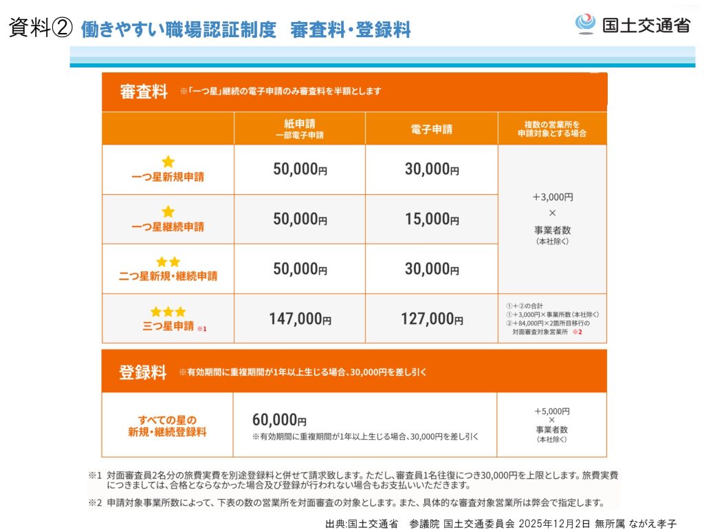④「働きやすい職場」認証制度の改善(申請料などの低廉化など)を検討してはどうか。