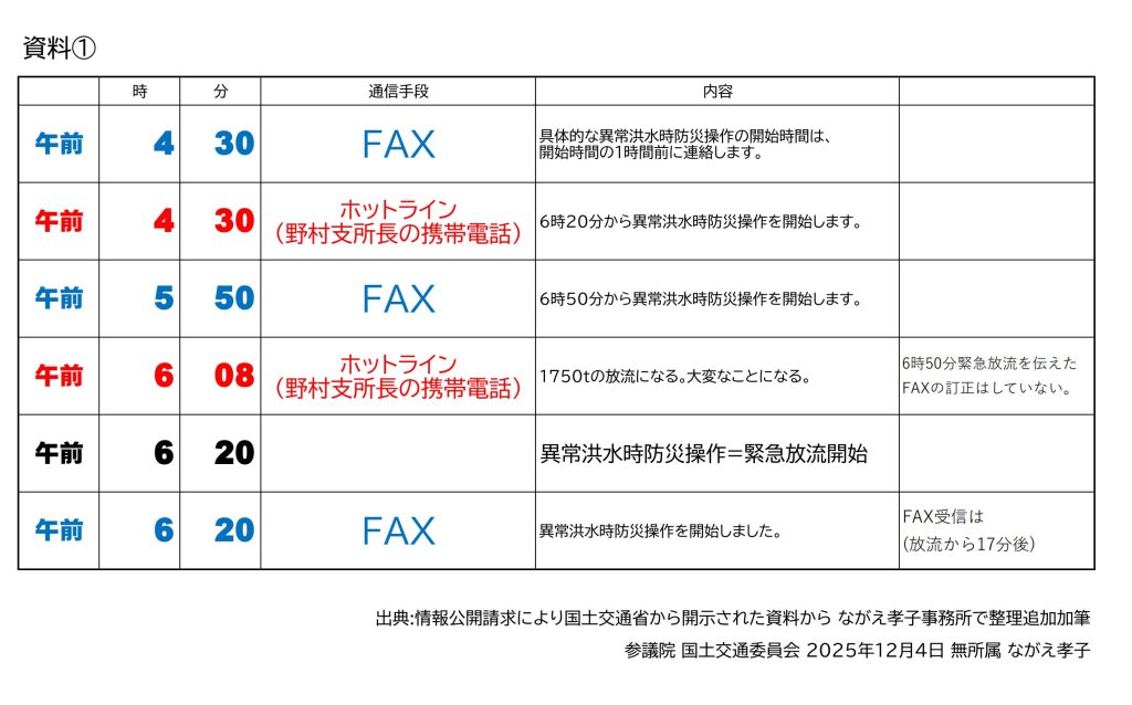 ①大雨でダムの異常洪水時防災操作を行う際の自治体への公式伝達ルートは、どういった手段で統一されているか?